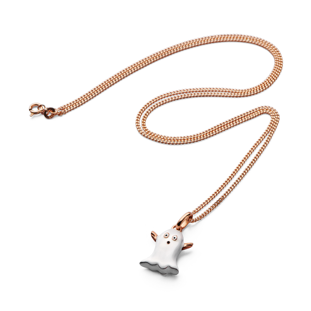 Ghost charm with 18ct gold plated necklace, designed by Nick Cave. One of 4 collectible charms on Cave Things, this spooky little ghost is the perfect way to say ‘Boo’ to someone you love.
