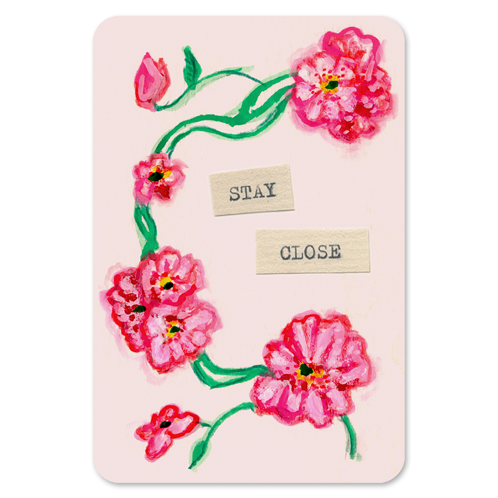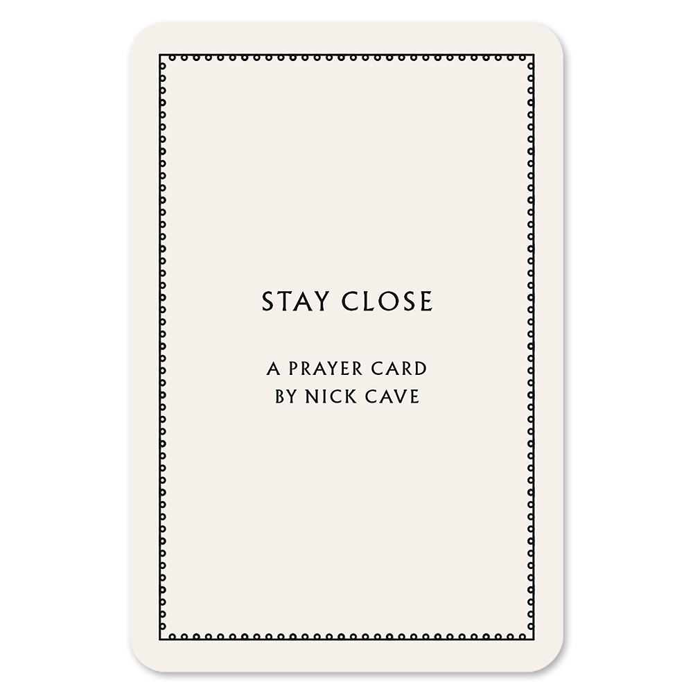 Prayer Card with painting by Nick Cave. This ‘Stay Close’ prayer card is one of 6 charming cards available on Cave Things, each feature a watercolour painting hand painted by the artist.