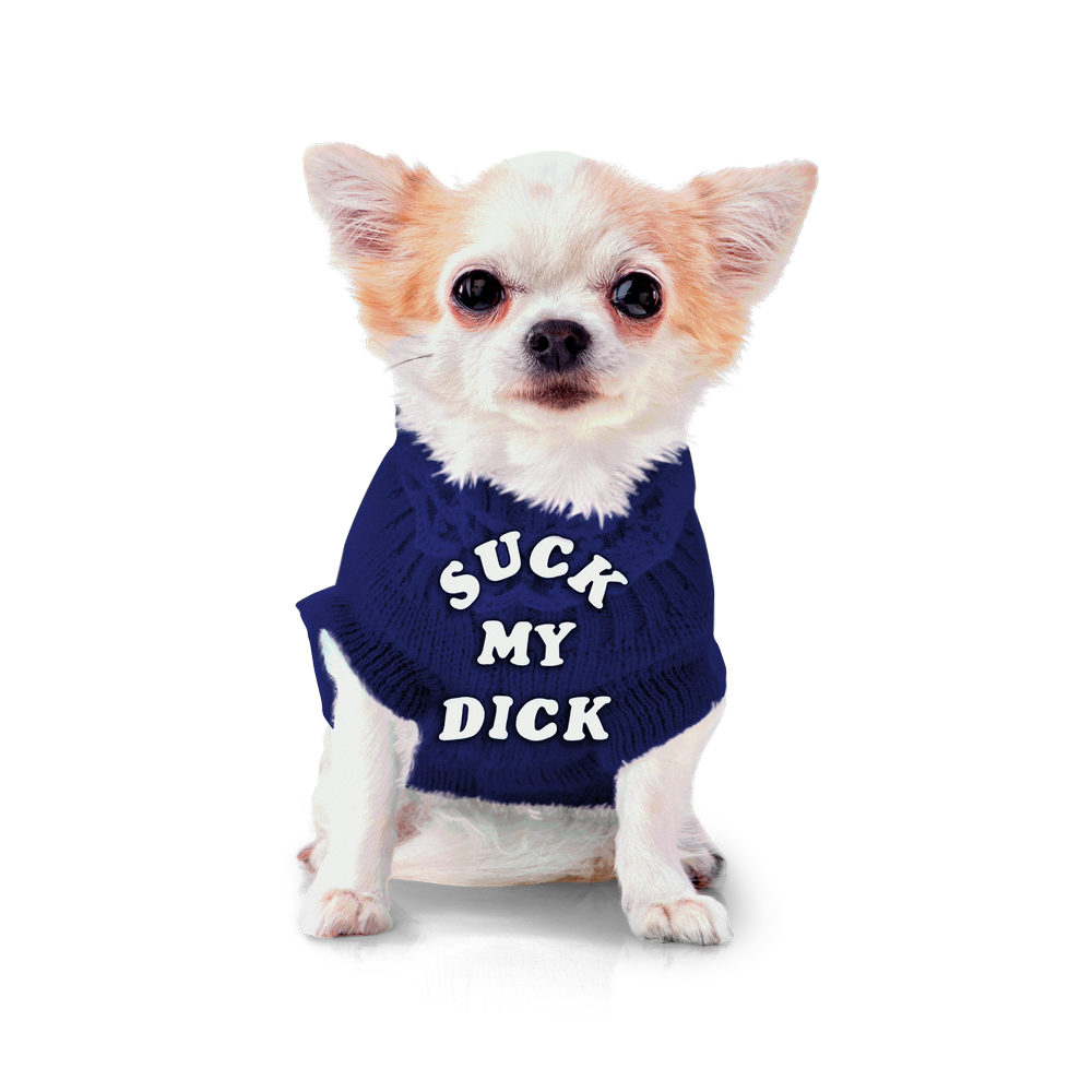 In memory of the great and genuinely anarchic Rayner Jesson I have created a variety of Suck My Dick items for your pleasure - a replica of the original t-shirt, some Suck My Dick stickers, a Suck My Dick mug and an alpaca Suck My Dick sweater for small dogs - all in a commanding presidential blue. Enjoy!´
